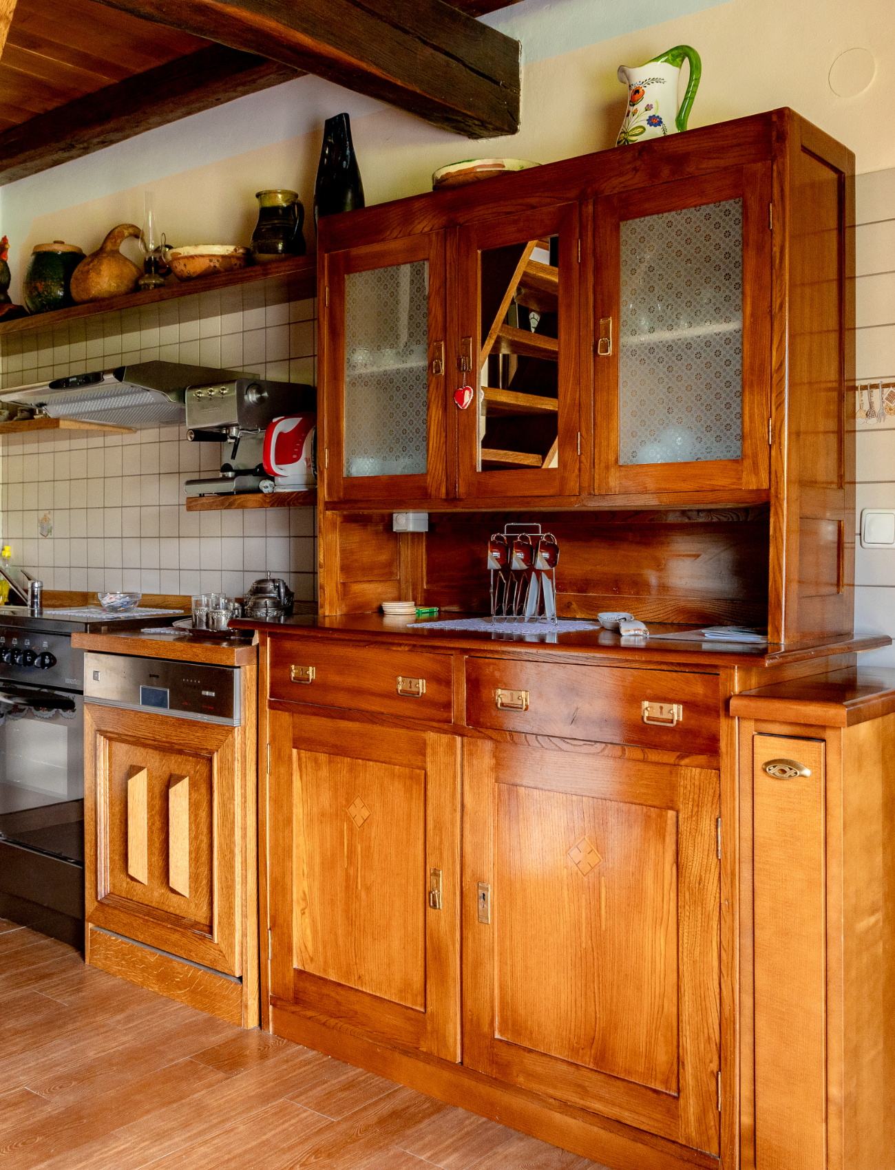 U prizemlju vas dočekuje prostrana kuhinja s blagovaonicom, dnevni boravak ispunjen secesijskim namještajem starim više od stotinu godina, udobna dvokrevetna spavaća soba te elegantna kupaonica s visokokvalitetnom tuš kabinom.