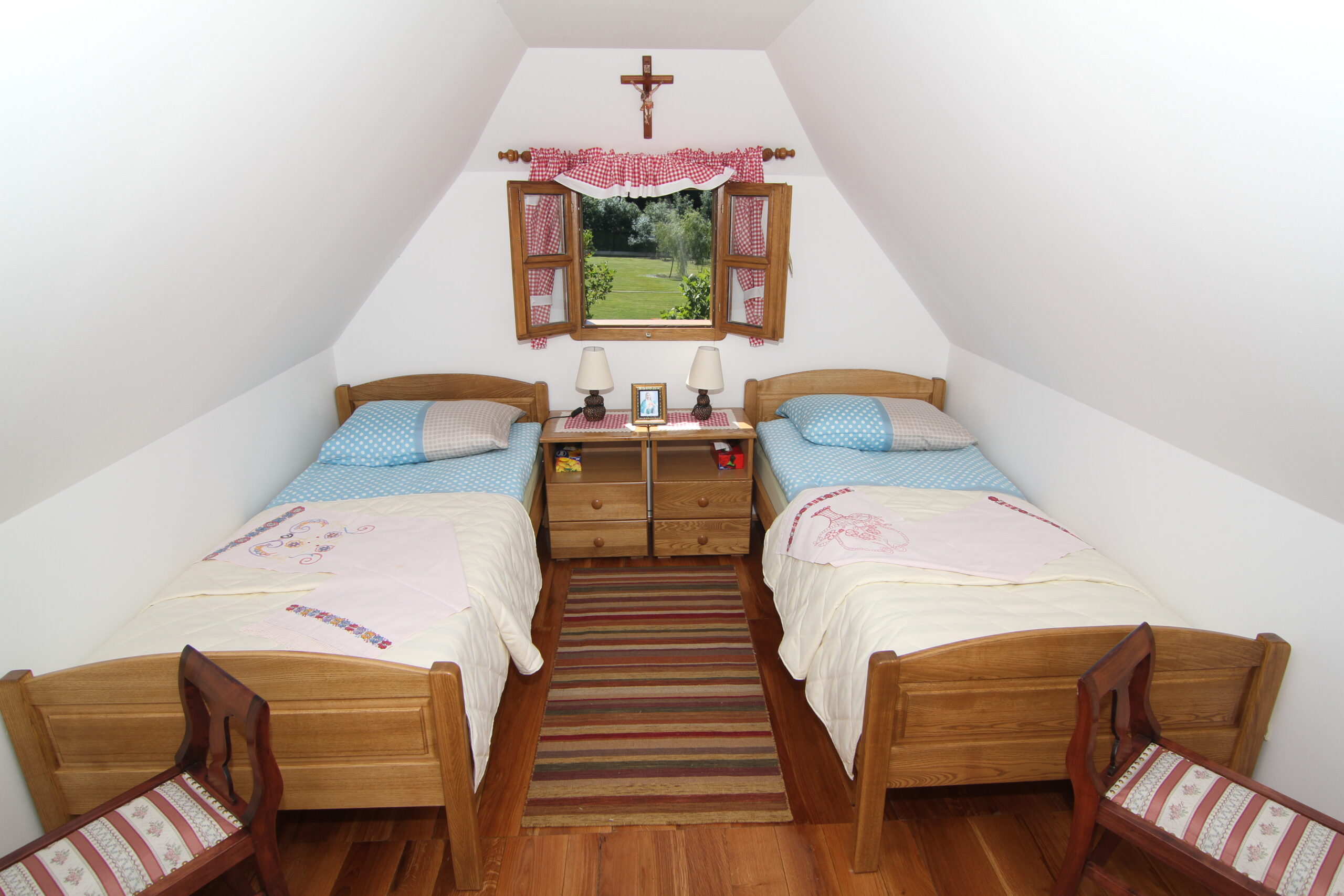 Na katu su smještene dvije svijetle i prostrane dvokrevetne spavaće sobe, galerija u kojoj dominira stoljetni klavir te zaseban WC, idealni za miran odmor i glazbene trenutke.
